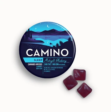 These are Midnight Blueberry 200mg gummies from Camino. Settle in for a smooth slumber by a serene lake and let all your worries go. Kiva’s Midnight Blueberry Camino gummies offer a calming combination of 20MG of THC, 4MG of CBN, relaxing terpenes and chamomile and lavender extracts to promote restful sleep. Take one before bed and enjoy a night of tranquil effects. Sweet dreams!