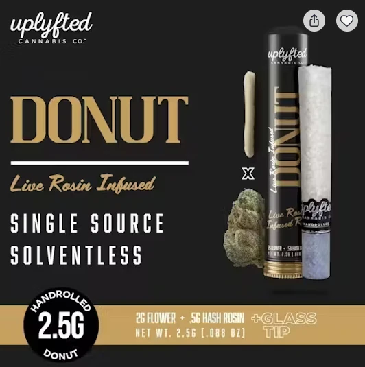 2.5g Live Rosin Donut with 2 grams of our exotic Canal St. x 0.5 gram of our Toronja Live Rosin.