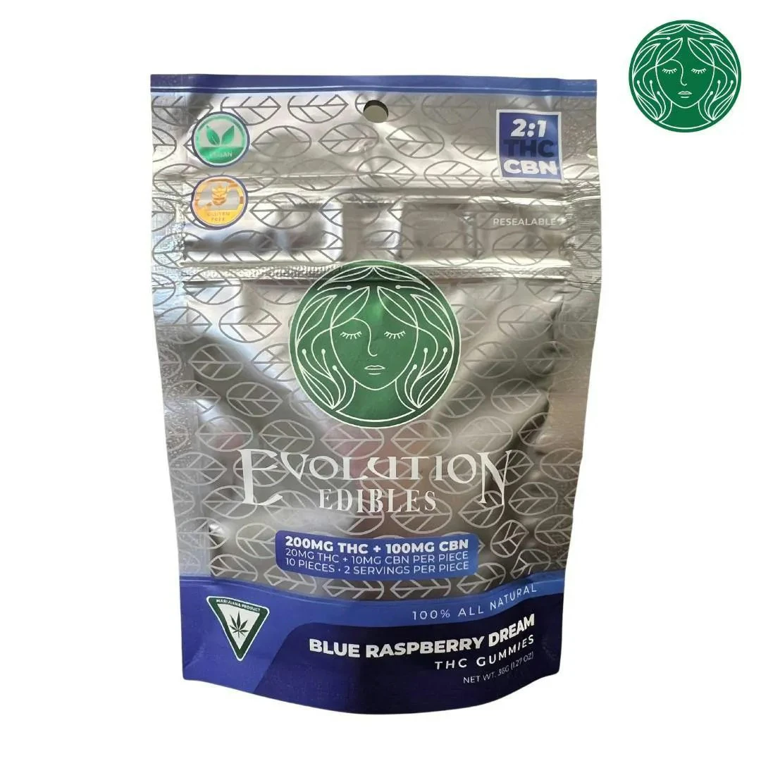 Evolution-Entourage-Blue Raspberry Dream-2:1 THC CBN-10 Pieces-200mg THC-100mg CBN