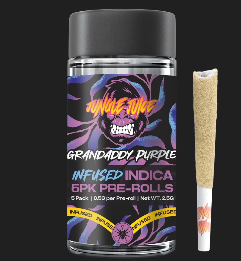 Jungle Juice-Grandaddy Purple-Indica-Infused Pre roll 5pk-50.2%-2.5g