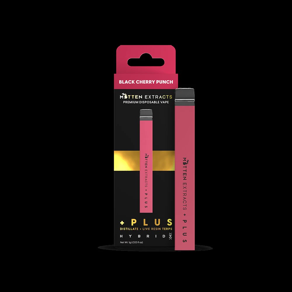 Mitten Extracts- Disposable Vape- Black Cherry Punch- Hybrid- Distillate- Live Resin Terps- Rechargeable- Ceramic Coil-1g- 85.36%