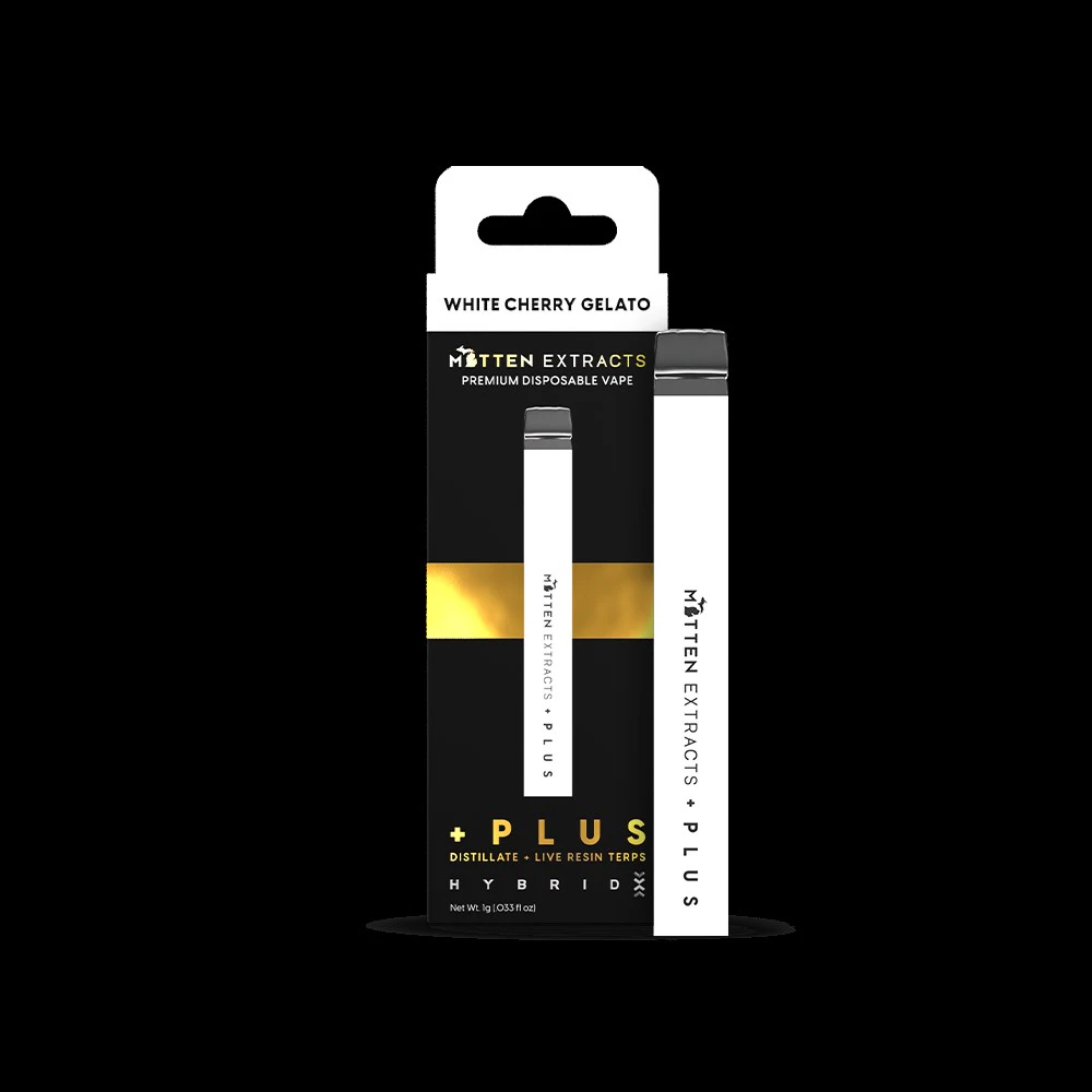 Mitten Extracts- Disposable Vape- White Cherry Gelato- Hybrid- Distillate- Live Resin Terps- Rechargeable- Ceramic Coil-1g-83.79%