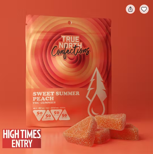 True North Confections Sweet Summer Peach premium THC infused gummies feature an improved vegan formula! These 50 mg pieces are gluten free, dairy free and made with local Michigan farm sourced beet sugar and natural Peach flavor. 4 x 50 mg THC pieces.200 mg THC total.