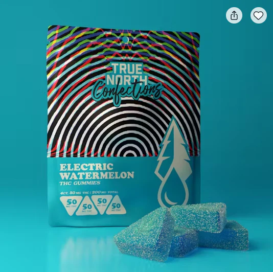 True North Confections Electric Watermelon premium THC infused gummies feature an improved vegan formula! These 50 mg pieces are gluten free, dairy free and made with local Michigan farm sourced beet sugar and natural Watermelon flavor.