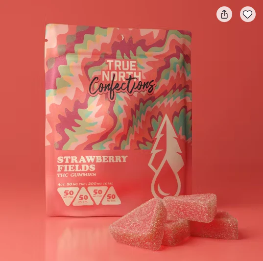 True North Confections Strawberry Fields premium THC infused gummies feature an improved vegan formula! These 50 mg pieces are gluten free, dairy free and made with local Michigan farm sourced beet sugar along with natural Strawberry flavors.